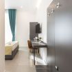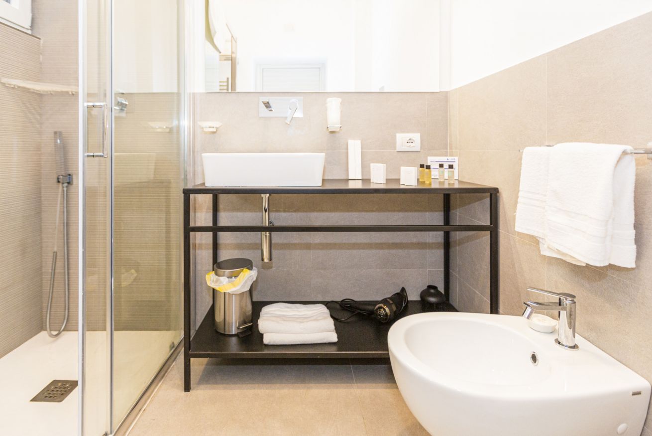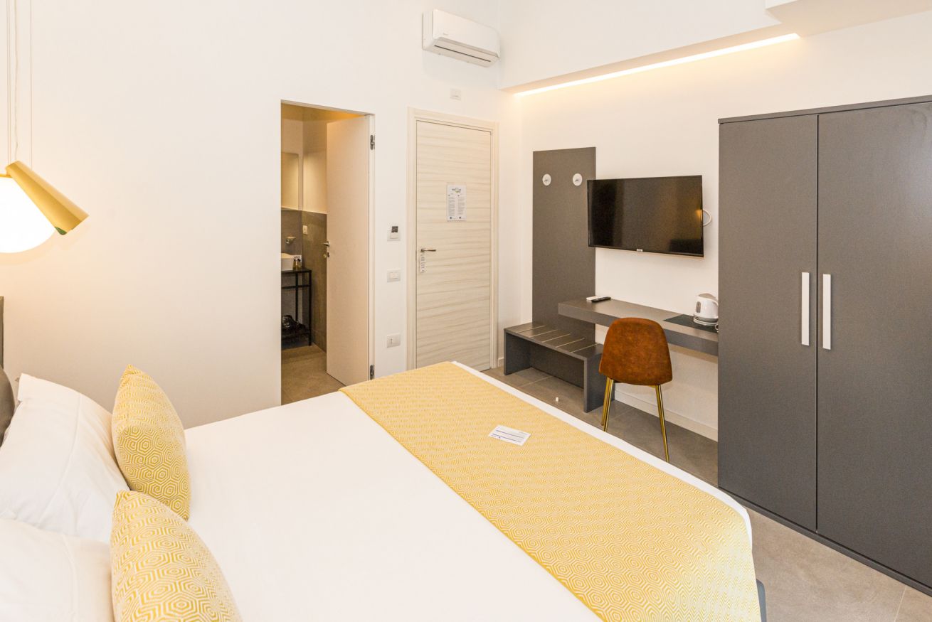 Le nostre camere Deluxe offrono un'esperienza di soggiorno esclusiva con una superficie di 20 m² e un accogliente letto matrimoniale, garantendo un comfort superiore. Ogni camera è climatizzata e ben attrezzata con SmartTV a schermo piatto, il bagno privato è fornito di prodotti da bagno gratuiti, bidet, WC, doccia, asciugacapelli e carta igienica, in un ambiente ideale e perfetto per rilassarsi dopo una giornata di esplorazione in città.